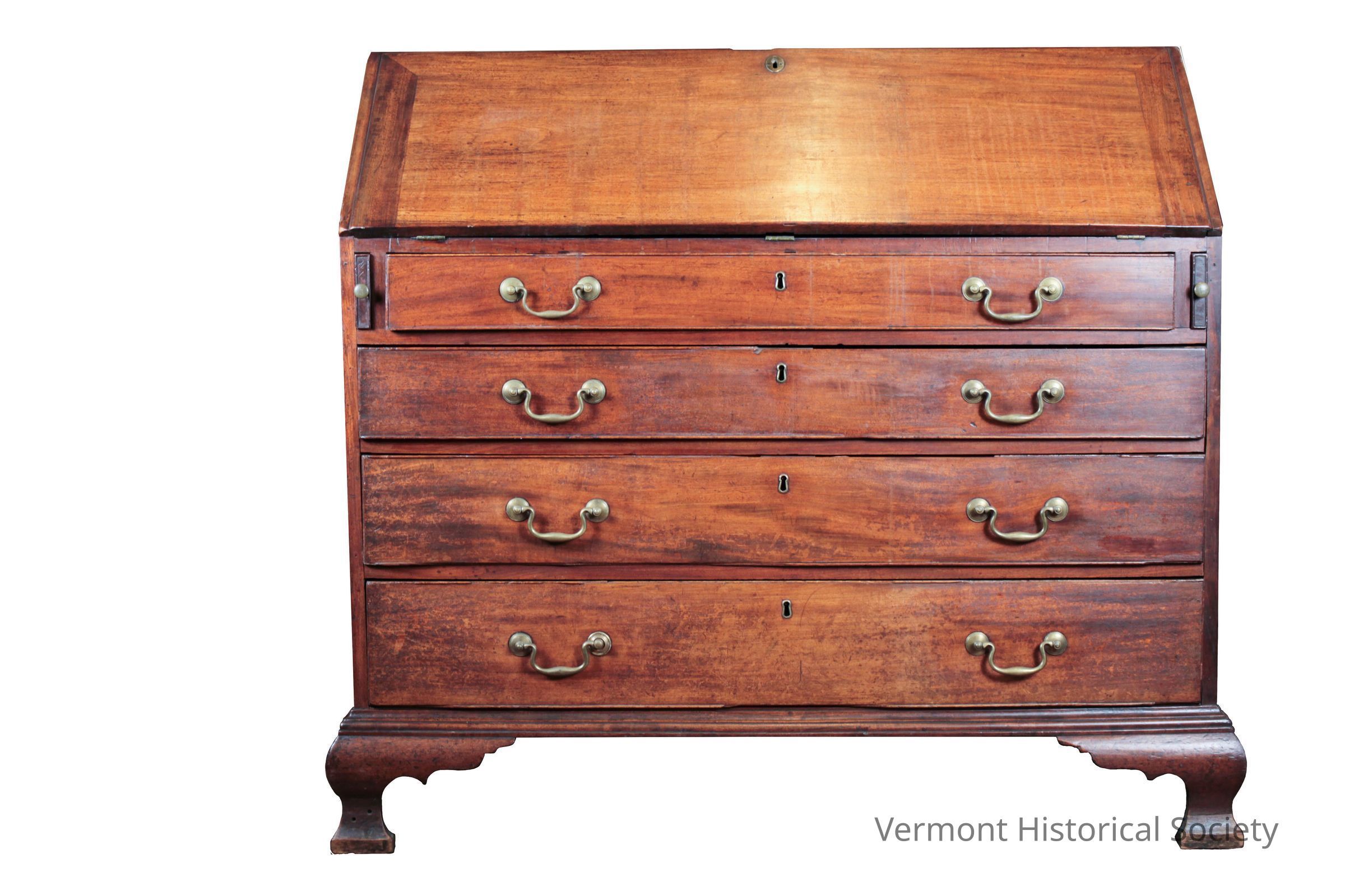 Ethan Allen, Thomas Chittenden, and Dr. Jonas Fay all used this desk when they stayed at the Catamount Tavern. The proprietor of the tavern, Stephen Fay, hosted these and other men when they met to organize the Green Mountain Boys, fight the British advancing on Bennington, and plan how Vermont would be governed.