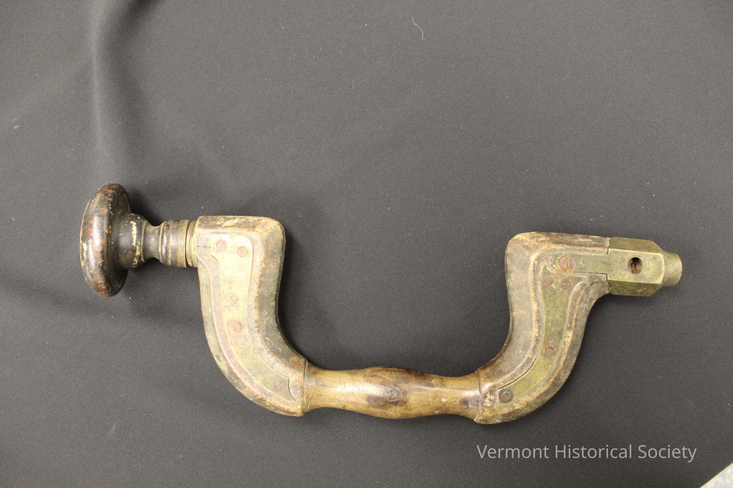 Bit brace hand drill. The letters "HX" are on the brass blate near the bit, and the neck is stamped "[illeg]LS. HOL[illeg]".