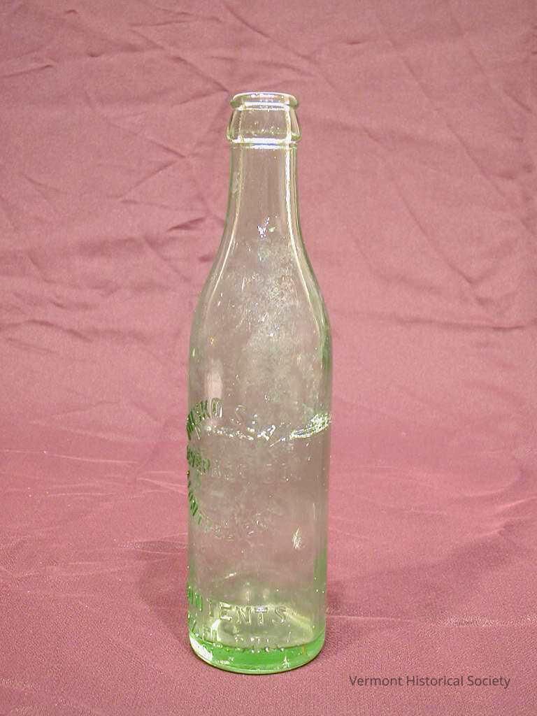 Green glass soda bottle with the molded label, "MISKO SEAL/BEVERAGE CO./MONTPELIER, VT."