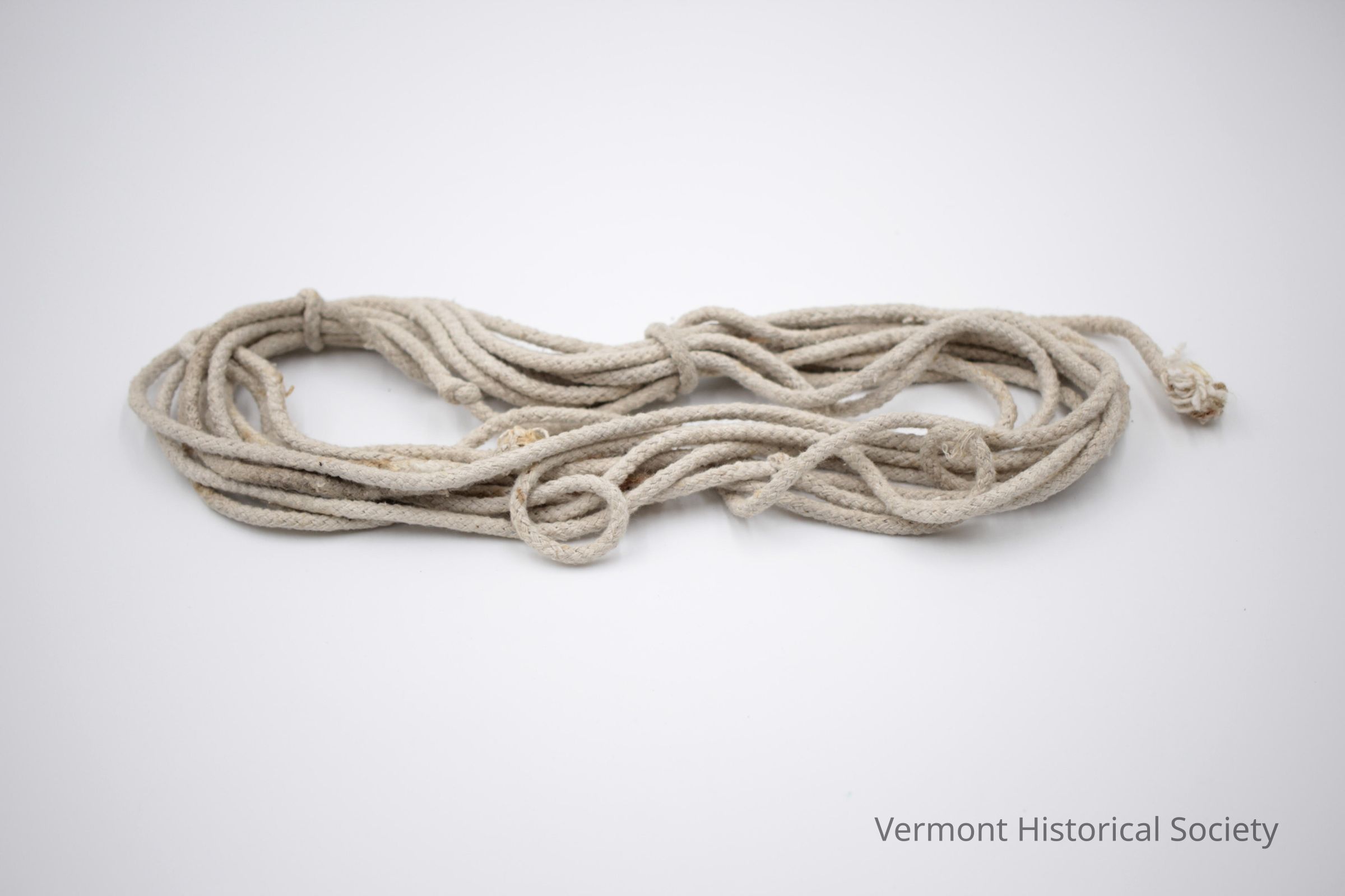 Length of blood stained cotton rope. The braided rope is tied in a hank.