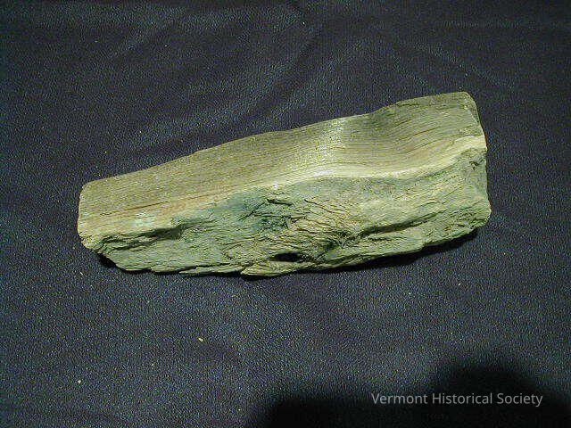 Wood fragment. The piece is smooth on one side and round around the rest.Context