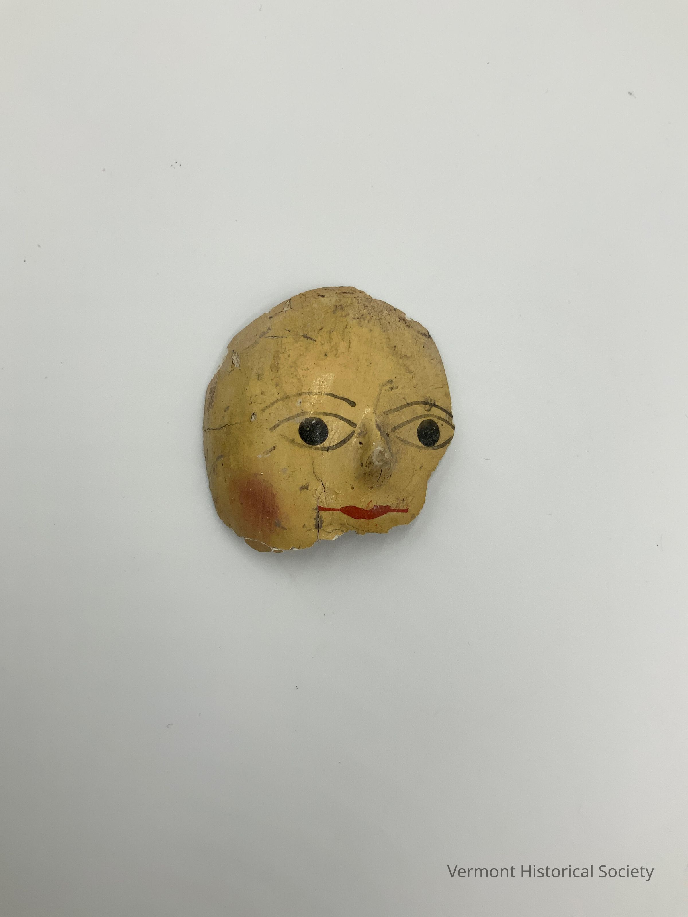This face is a from a doll that dates to the early nineteenth century that took heavy damage during the Great Vermont Flood of 1927 in Montpelier, VermontAcquisition