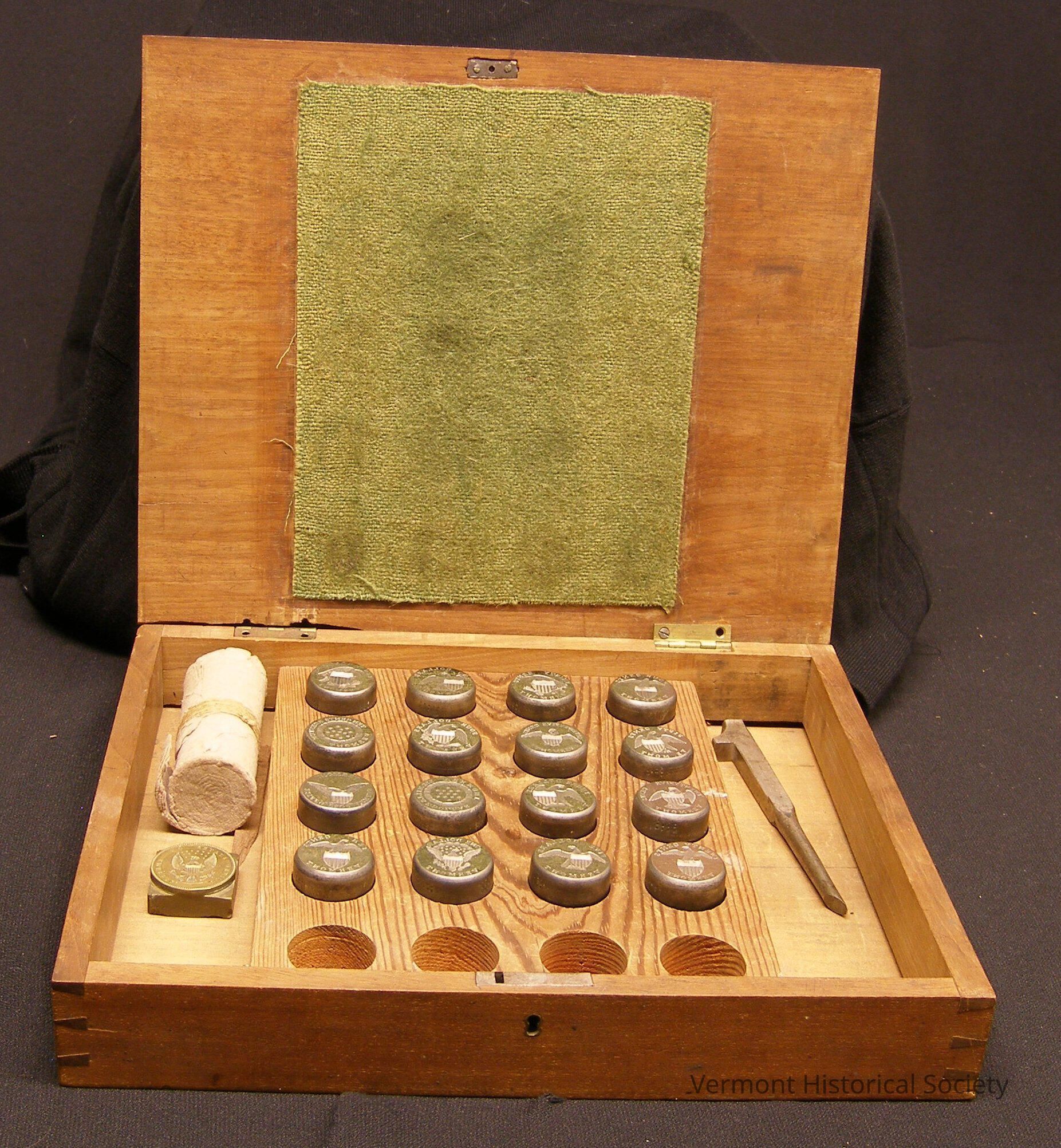 In 1797 the U.S. Congress passed the "Stamp Act" authorizing each state to stamp bills of exchange, licenses, commissions, bonds, and similar documents. This act was passed to support the war with France and to increase the circulation of paper currency. There were three federal issues of this act. The first issue was in effect from July 1, 1798 to February 28, 1801. For this issue the U.S. Congress sent a press and a set of steel dies to each of the then sixteen states. Officers of each state were obligated to mark all documents with the proper stamp. Each of the dies represented a denomination and was engraved with the name of the state that used it. Stamps range in denomination from four cents to ten dollars (4c, 10c, 20c, 25c, 30c, 50c, 75c, $1, $2, $4, $5 and $10).