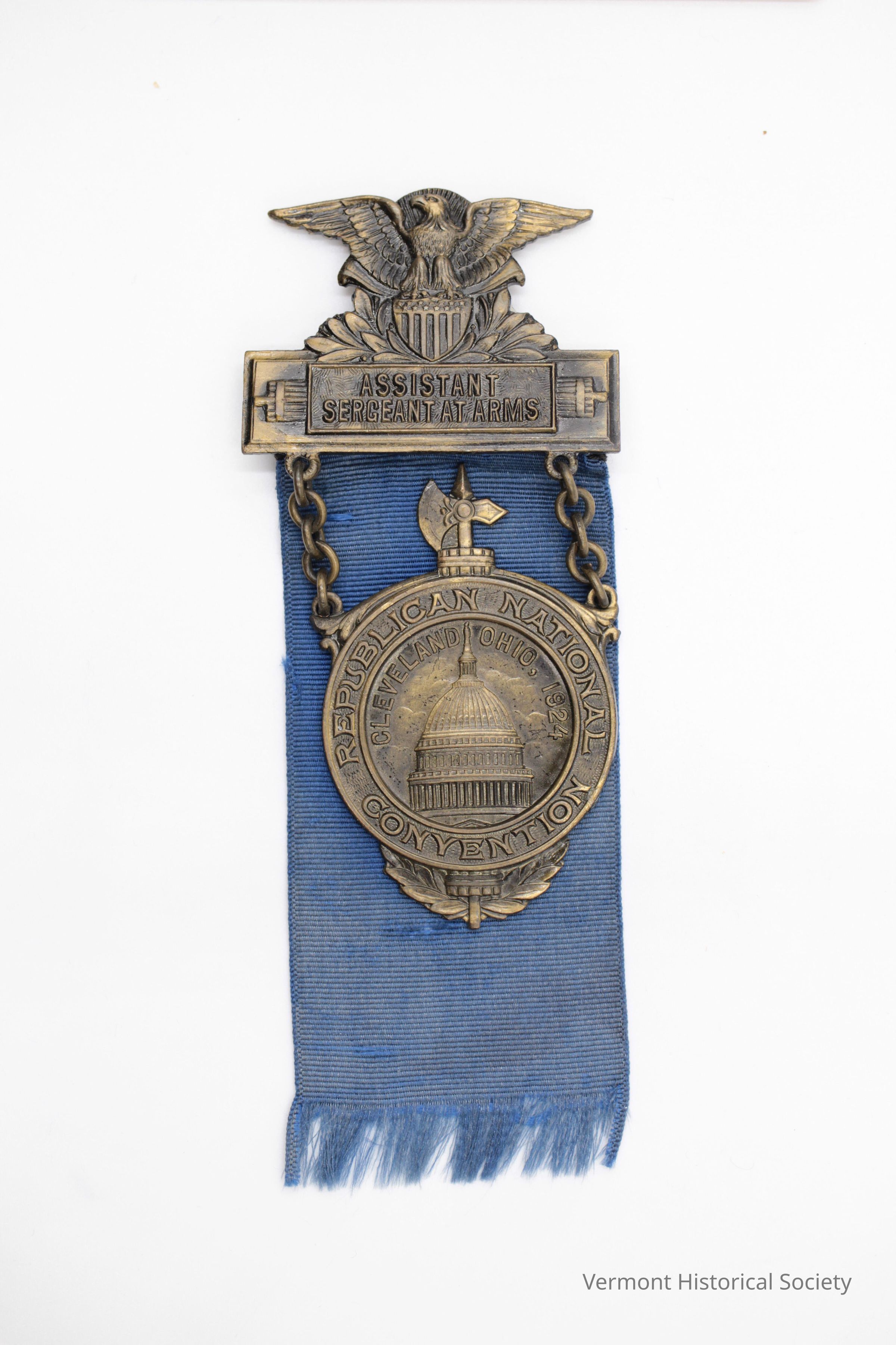 Worn by the Assistant Sergeant at Arms at the 1924 Republican National Convention, during which Calvin Coolidge won the party's nomination for President. Coolidge had become president the year before at the death of President Warren G. Harding.Acquisition