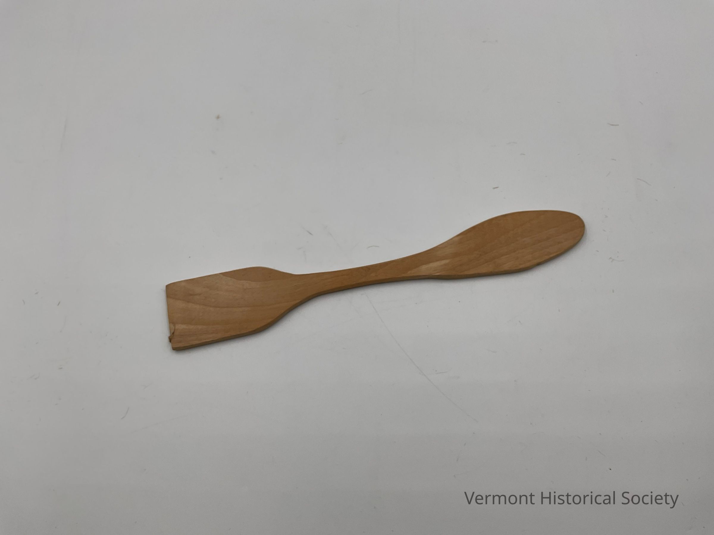 Piece of wood shaped like a spatula use in the construction of furniture.Context