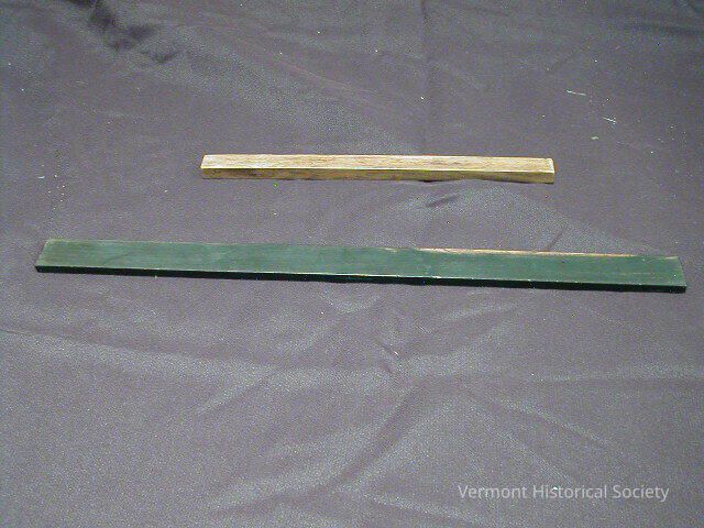 Two rulers, one painted black. The black ruler has a beveled edge but no measurement lines.