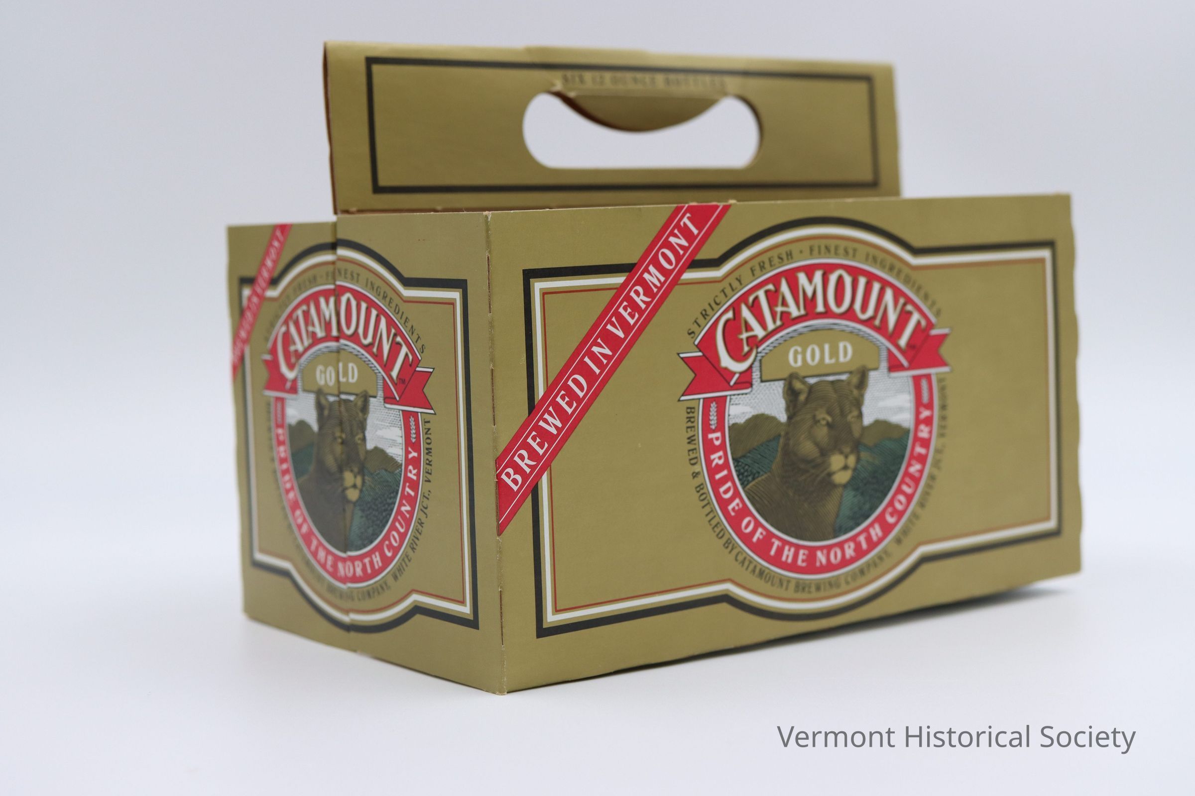 Founded in 1984 by partners Stephen Mason, Alan Davis, and Stephen Israel, the Catamount Brewing Company was among the pioneers of craft beer on the East Coast. Their Catamount Gold, the bottle featured here, won a gold medal at the 1989 Great American Beer Festival. They expanded quickly and opened a huge new brewing facility in Windsor in 1996, but their meteoric rise was matched by an equally quick fall, and they closed in April 2000. The Windsor facility was purchased and is still occupied today by the Massachusetts Bay Brewing Company, makers of Harpoon. In 2020, Harpoon begin brewing under the Catamount label once again.