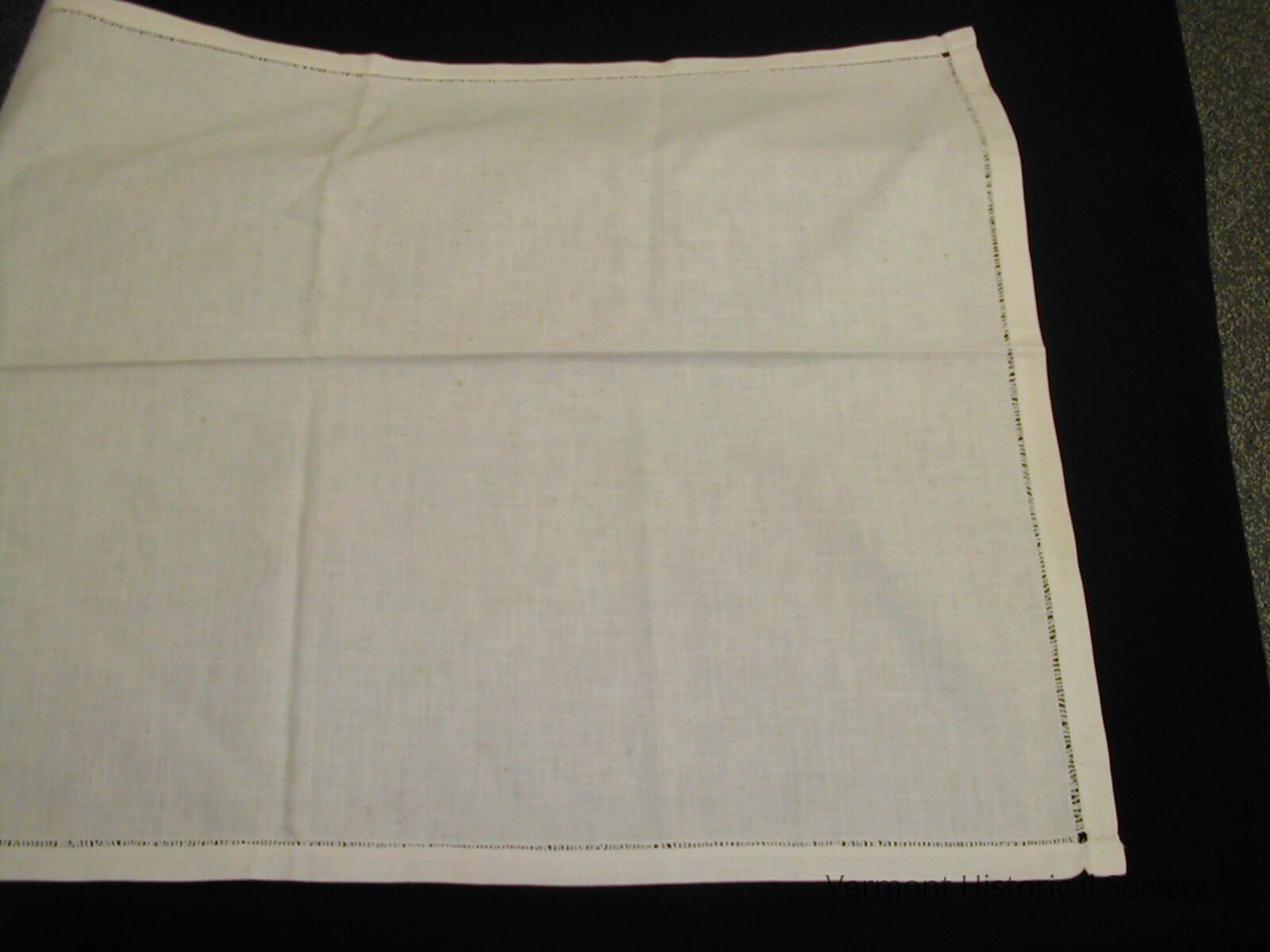 White linen rectangular tablecloth with 3/4-inch hem with hemstitch border.