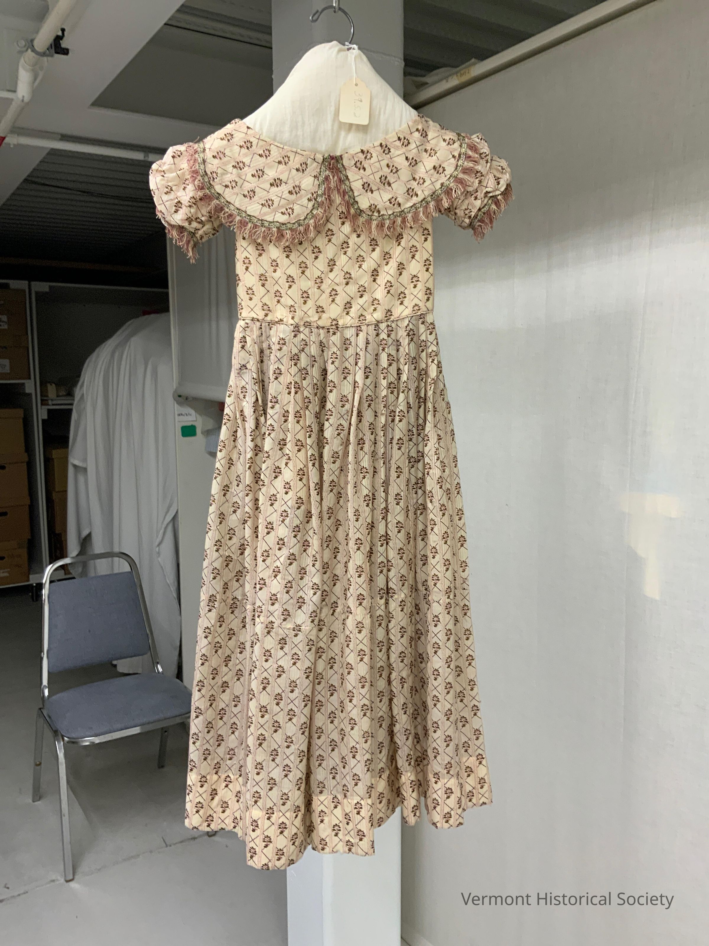 Worn by Jennie Betsey Knight Jackson in Starksboro, Vermont. The dress was made out of fabric from her aunt's wedding dress (Susan Jane Hill).Acquisition