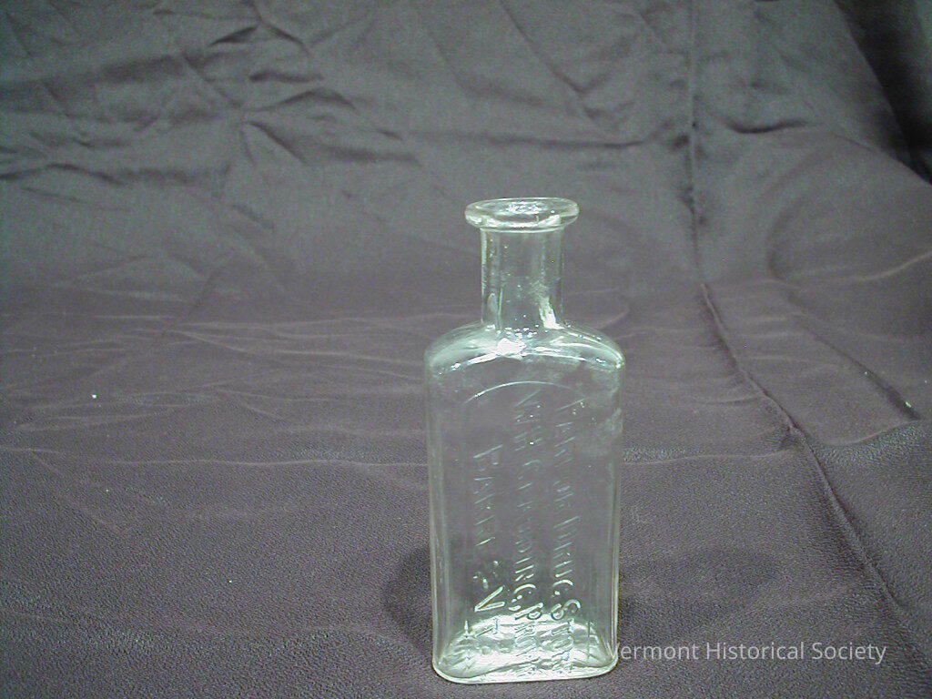 Clear glass medicine bottle with the molded inscription, "Parlor Drug Store W. H. Gladding Prop'r. Barre, Vt."