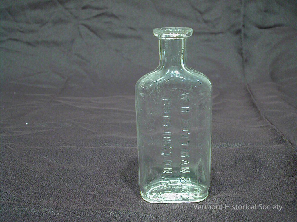Clear glass medicine bottle with the molded inscription, "W. H. ZOTTMAN & CO. BURLINGTON, VT." The bottom is labeled, "W.T. Co. PAT JAN 18 98"