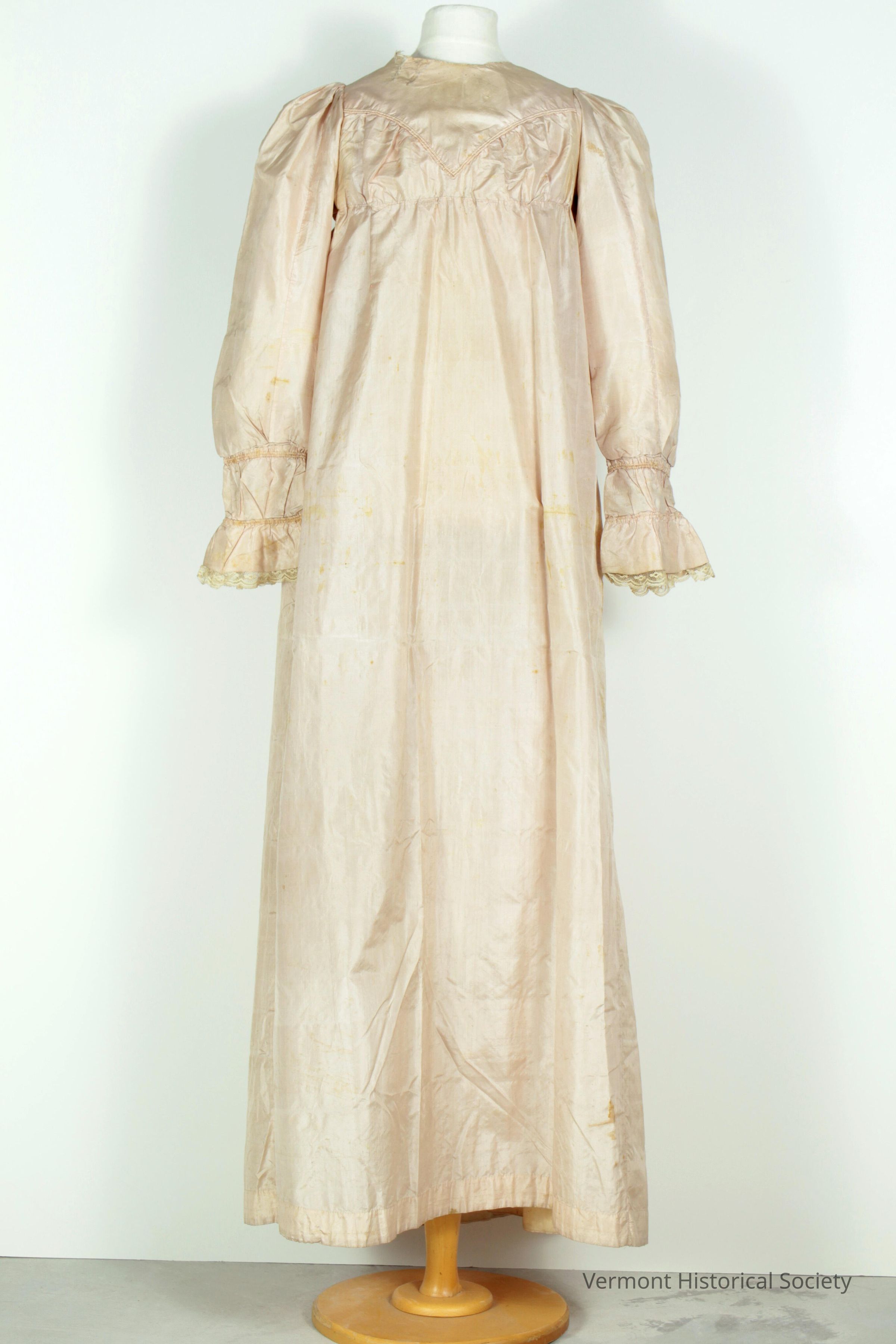 Purportedly worn by Mrs. John Mattocks of Peacham, VT, for the inaugural reception of her husband, Gov. John Mattocks in 1843.Acquisition
