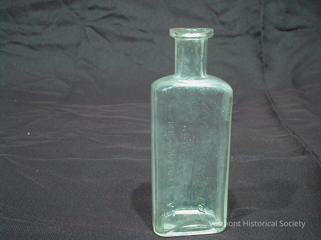 Clear glass medicine bottle with the molded inscription, "Cheney Bros. DRUGGISTS LYNDONVILLE, VT."