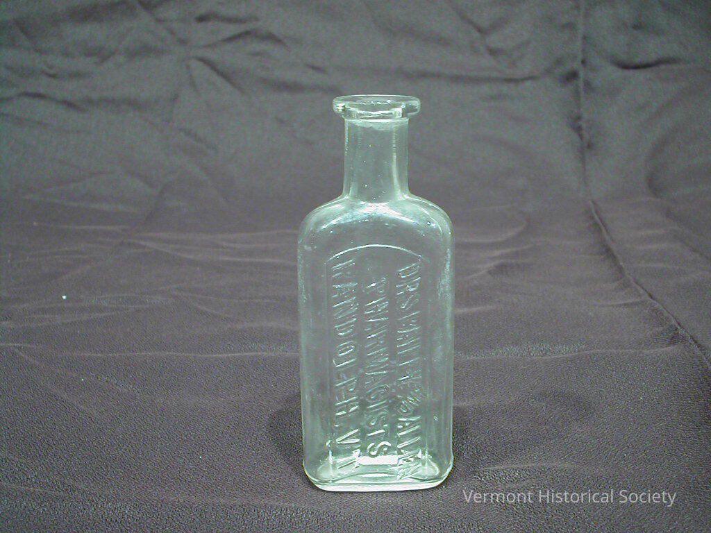 Clear glass medicine bottle with the molded inscription, "DRS BAILEY AND ALLEN/PHARMACISTS/ RANDOLPH, VT."