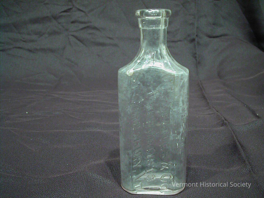 Clear glass bottle with the molded inscription, "C.A. SEARLES & CO. PHARMACISTS ST. JOHNSBURY, VT." The sides have measurement lines.