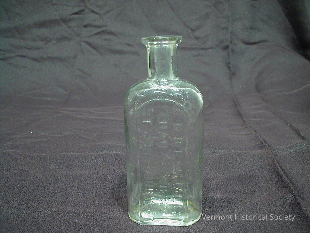 Clear glass bottle with the molded inscription, "C.D. RANDALL/RAIL ROAD ST./ST JOHNSBURY, VT.