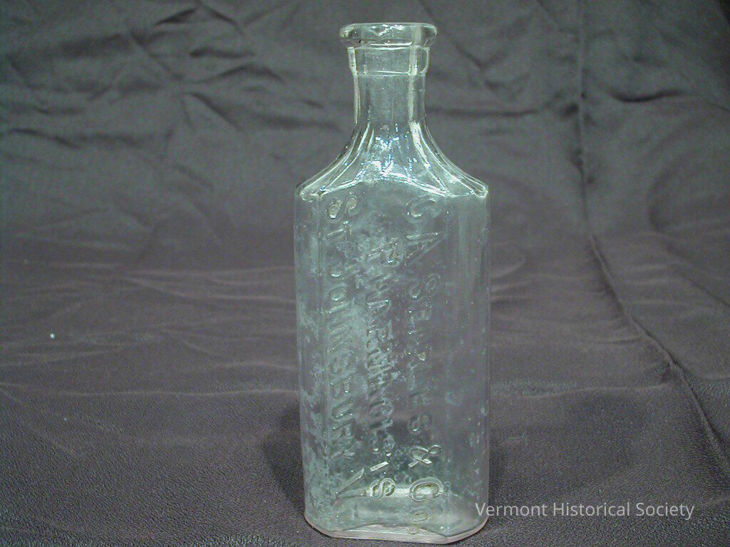 Clear glass bottle with the molded inscription, "C.A. SEARLES & CO./PHARMACISTS/ ST. JOHNSBURY, VT." The bottom is marked, "MADE IN MARVEL U. S. A."Context