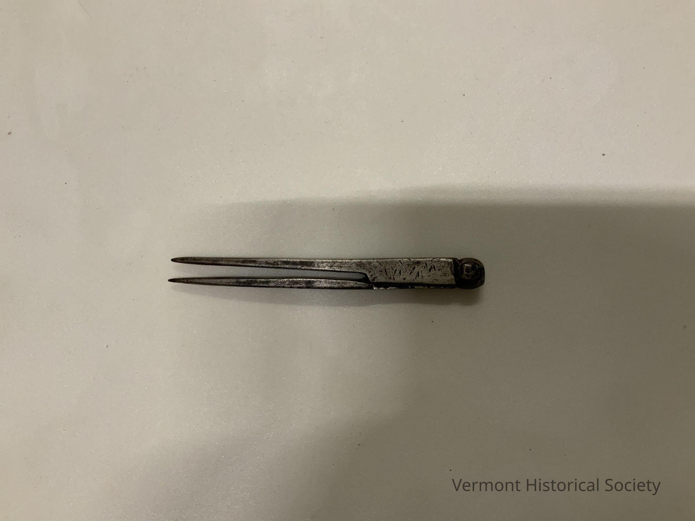 Small, handmade metal dividers consisting of two arms on a central hinge.