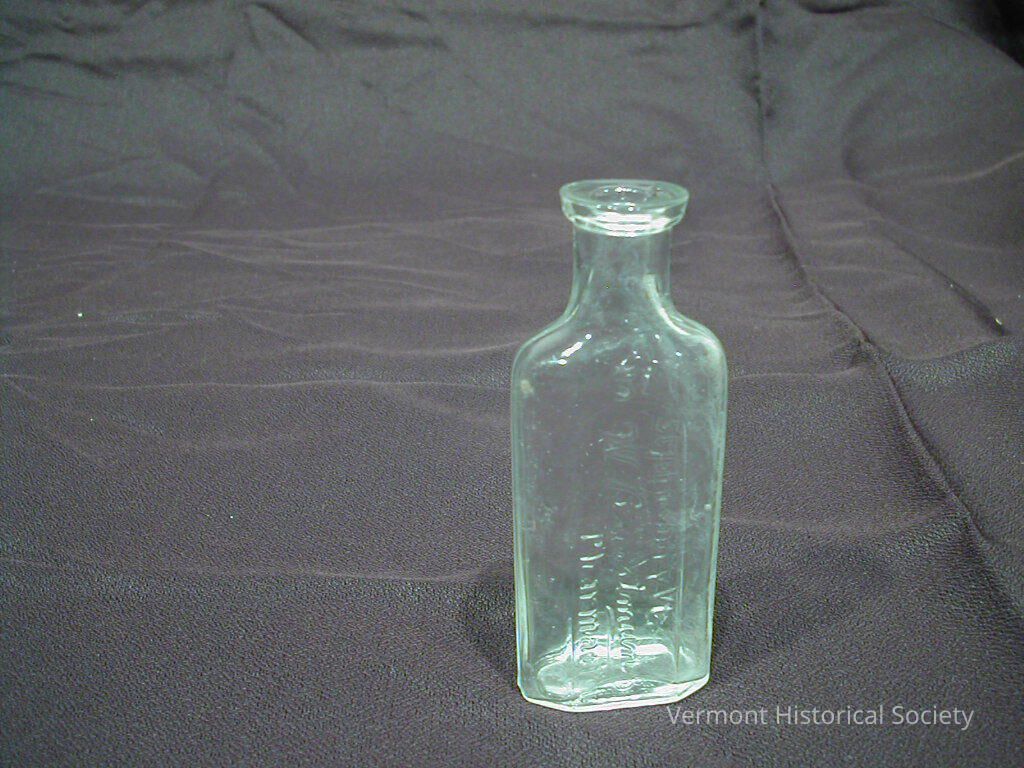 Clear glass bottle with the molded inscription, "St. Johnsbury, Vt. W.B. Eastman Pharmacist".