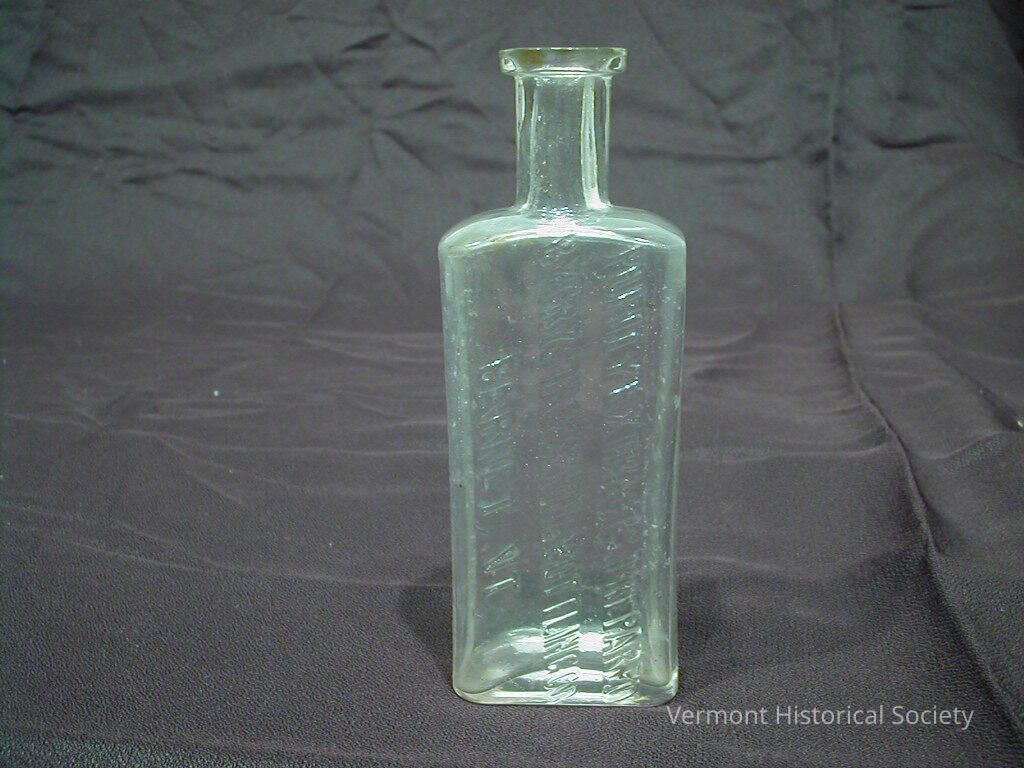 Clear glass bottle with the molded inscription, "PURITH EXTRACTS PREPARED BY CRYSTAL SPRING BOTTLING CO. BARNET, VT" on the front, "GUARANTEED PURE" on one side, and "FULL 4 OZ" on the other side.Context