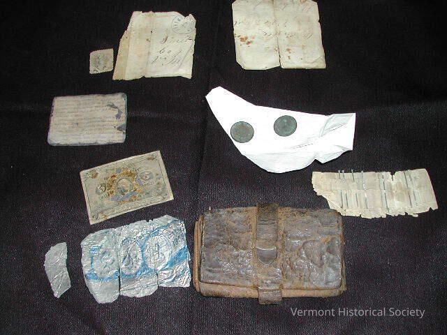 Carried by Smith Ormsbee of Montpelier, Vermont, during the Civil War. The wallet and its contents were on Ormsbee when he was killed in Charlestown, Virginia.Acquisition