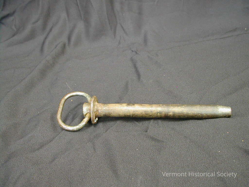 Picket pin consisting of a metal peg with an oval ring at one end.