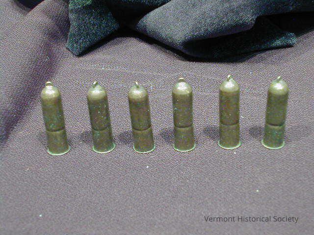 Six metal cased bullets with hollow ends.