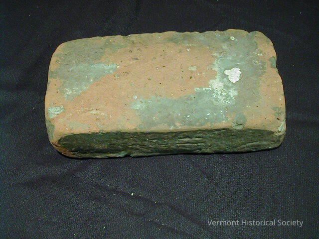 Red clay brick. There is evidence of mortar on the top and bottom.