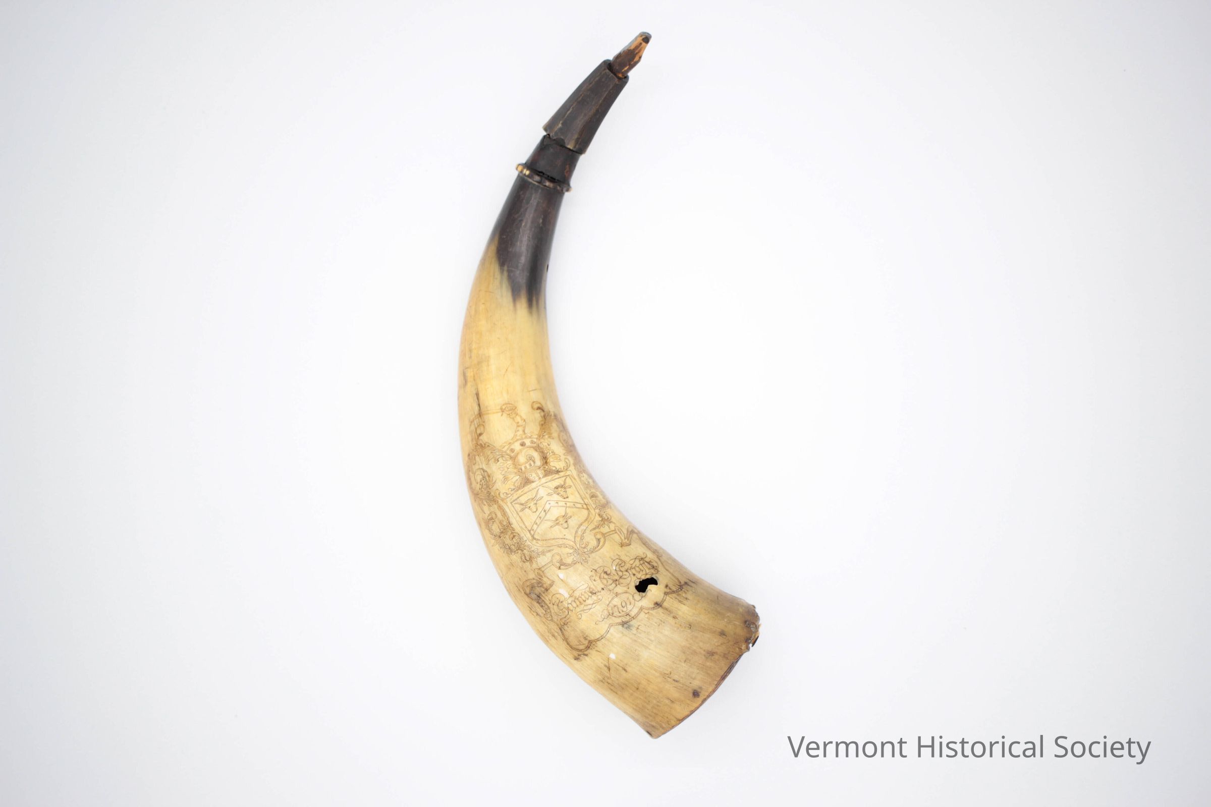 Owned by Samuel C. Crafts, 12th Governor of Vermont. The horn is engraved with the year 1791, which is the year Crafts moved from Connecticut to Vermont.