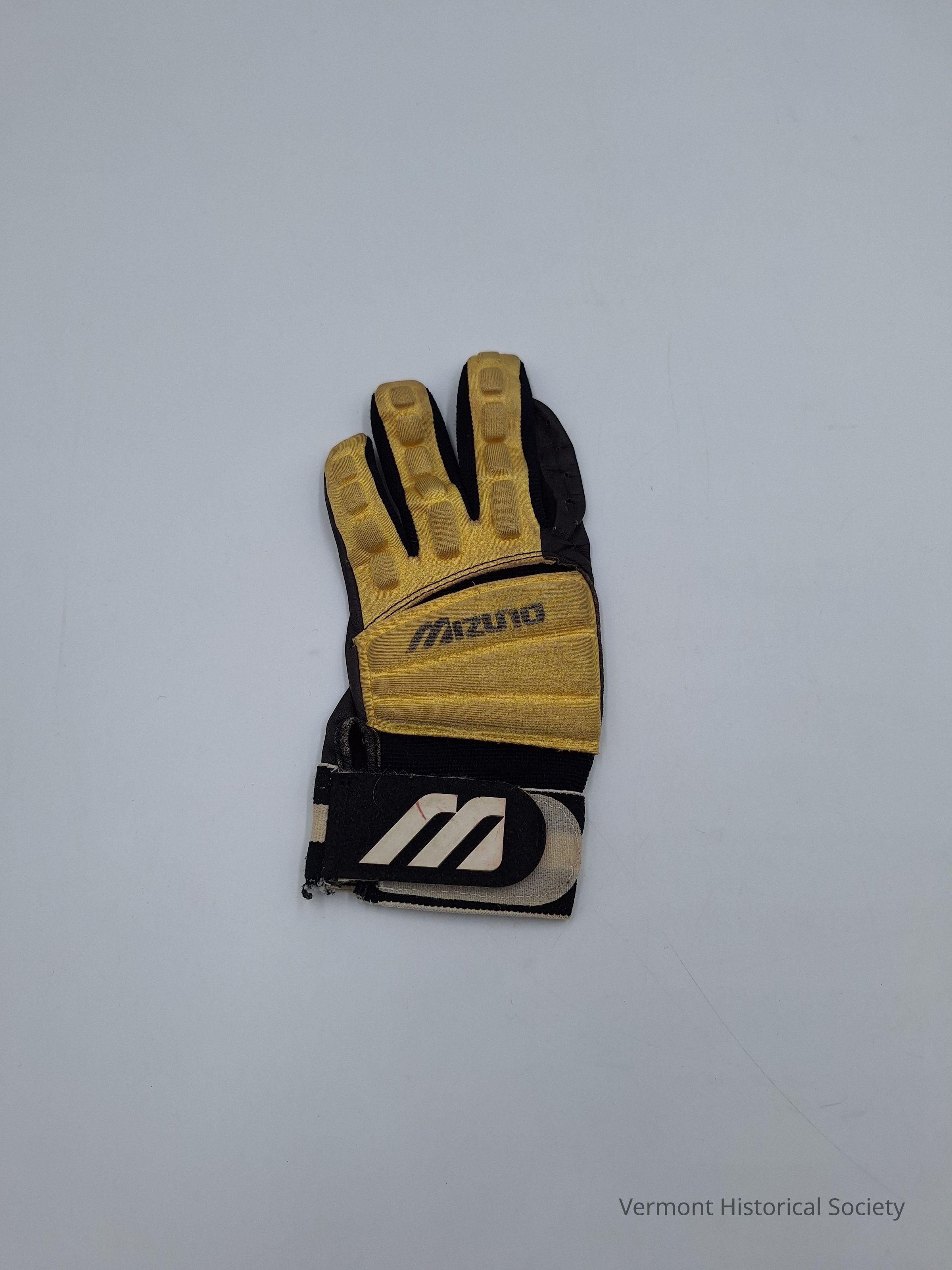 Mizuno black and yellow batting glove.