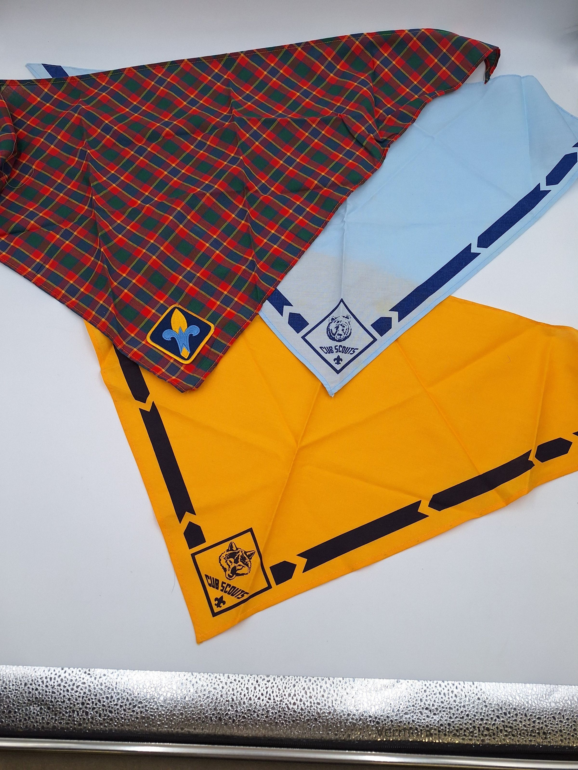 The first two scarves are printed with the Cub Scouts of America logo.Acquisition