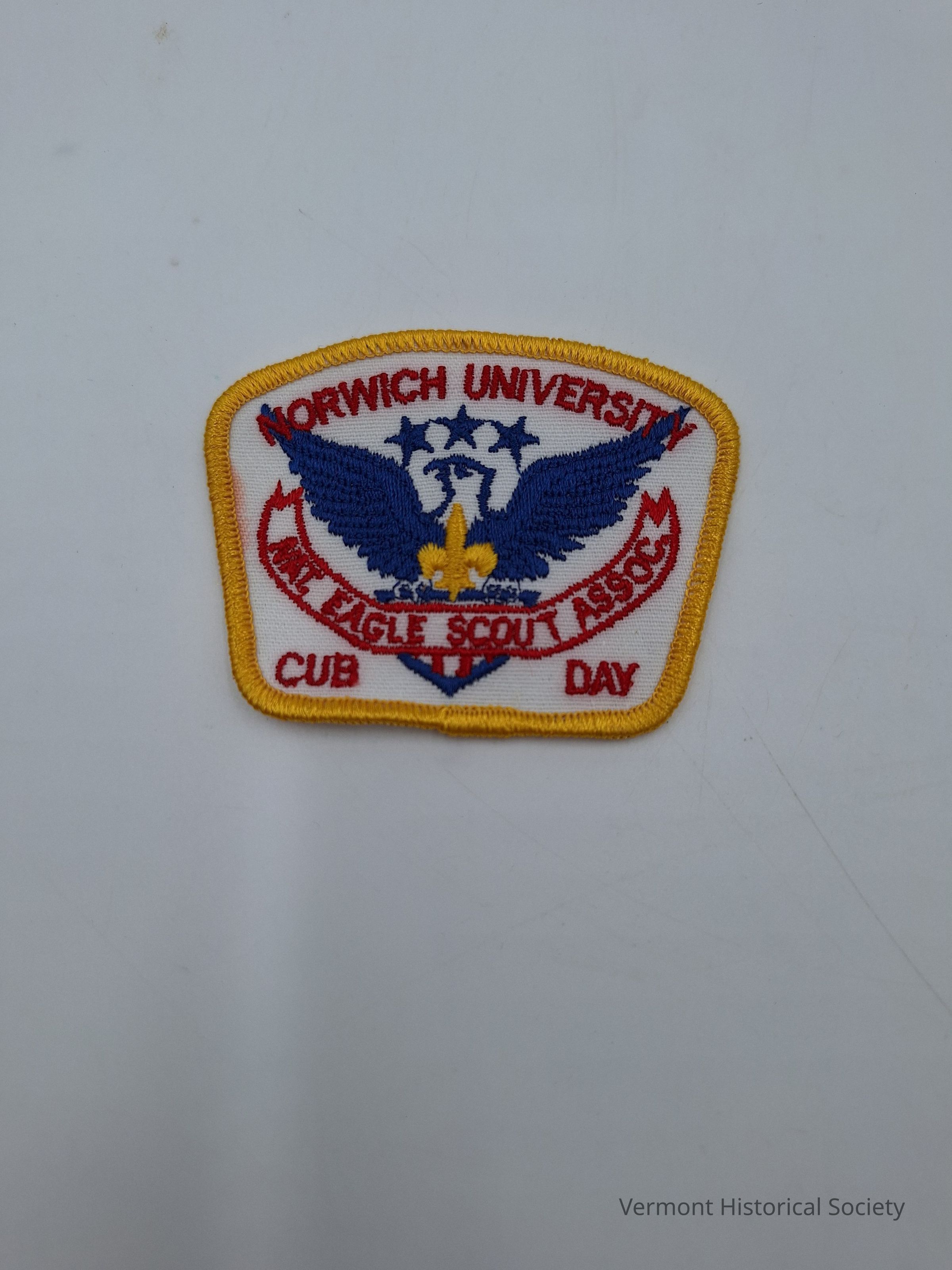 Iron-on patch for the Norwich University Cub Scout Day [date?] earned by Kenny Lindner, Waterbury Cub Scout Pack 711.