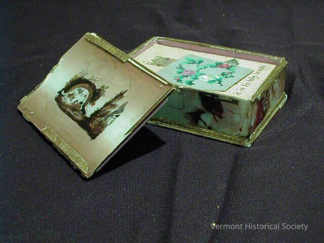 In addition to these items, there are a total of 49 calling cards, each nearly identical in size. Most of these calling cards originate from Lowell, Massachusetts, or Lyndon, Vermont. However, some of them come from Cabot, Vermont.Context