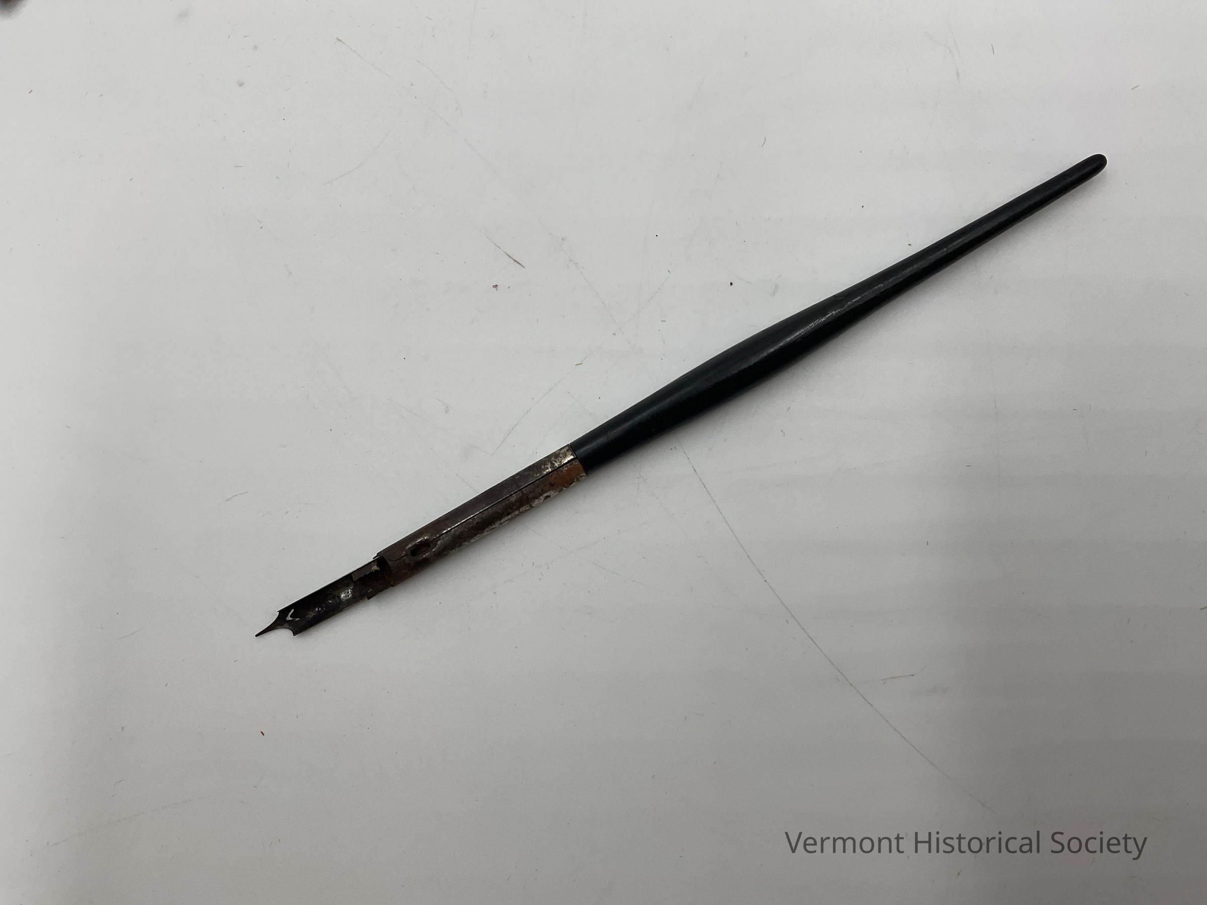 This pen is said to have belonged to Frank C. Partridge (1861-1943). He was born in East Middlebury, and graduated from Amherst College in 1882 and Columbia Law School in 1884. He was appointed U.S. Senator from Vermont (1930-31) to serve out the term of Frank Green who had died in office. He was chairman of the board of the Vermont Marble Co. in Proctor. he was on the board of directors of National Life Insurance Co. and the Rutland Railroad and a trustee of Middlebury College.Acquisition
