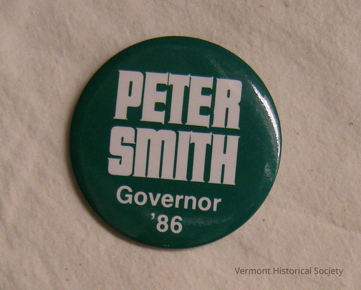 Made for the unsuccessful gubernatorial campaign of Peter Smith in 1986. Owned by Governor James Douglas.