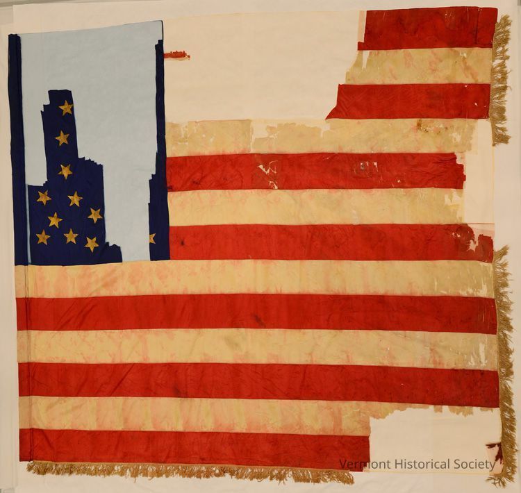 7th (or 17th) Vermont infantry regiment national flag. Silk with red and white stripes, with blue canton and white stars.
