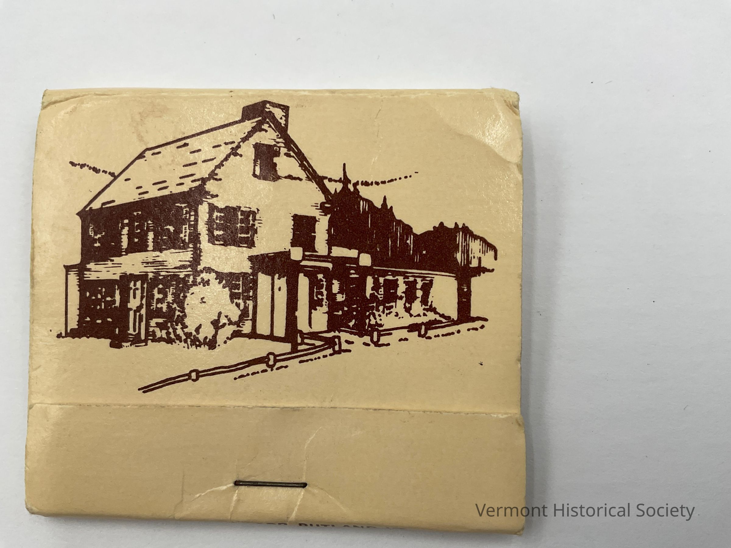 Beige colored matchbook with a brown sketch image of a house or inn. At the bottom of this cover is the warning, "Close cover, strike on back. At the top of the matchbook is a phone number, 802-387-5517. On the back in brown print is the following: The Putney Inn, Putney, Vermont 05346, Breakfast, Lunch, Dinner, served seven days, quality motel, Meeting and Banquet Center. On the bottom edge, in tiny print is, "Foley Dist. Corp., Rutland, Vt.Context