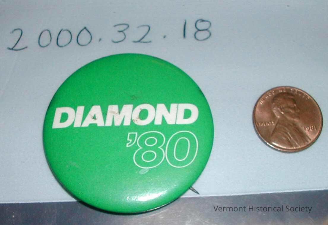 Jerome Diamond served as Attorney General of Vermont from 1975-1981. This campaign pin was from his last run for that office.
