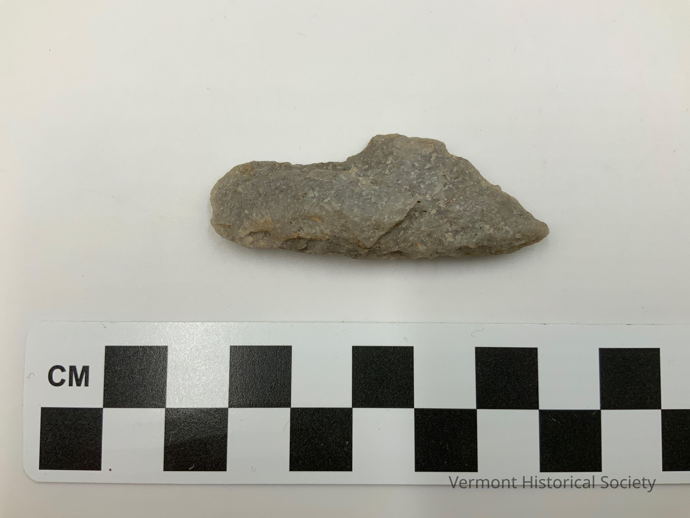 Chipped stone projectile point with a straight stem.