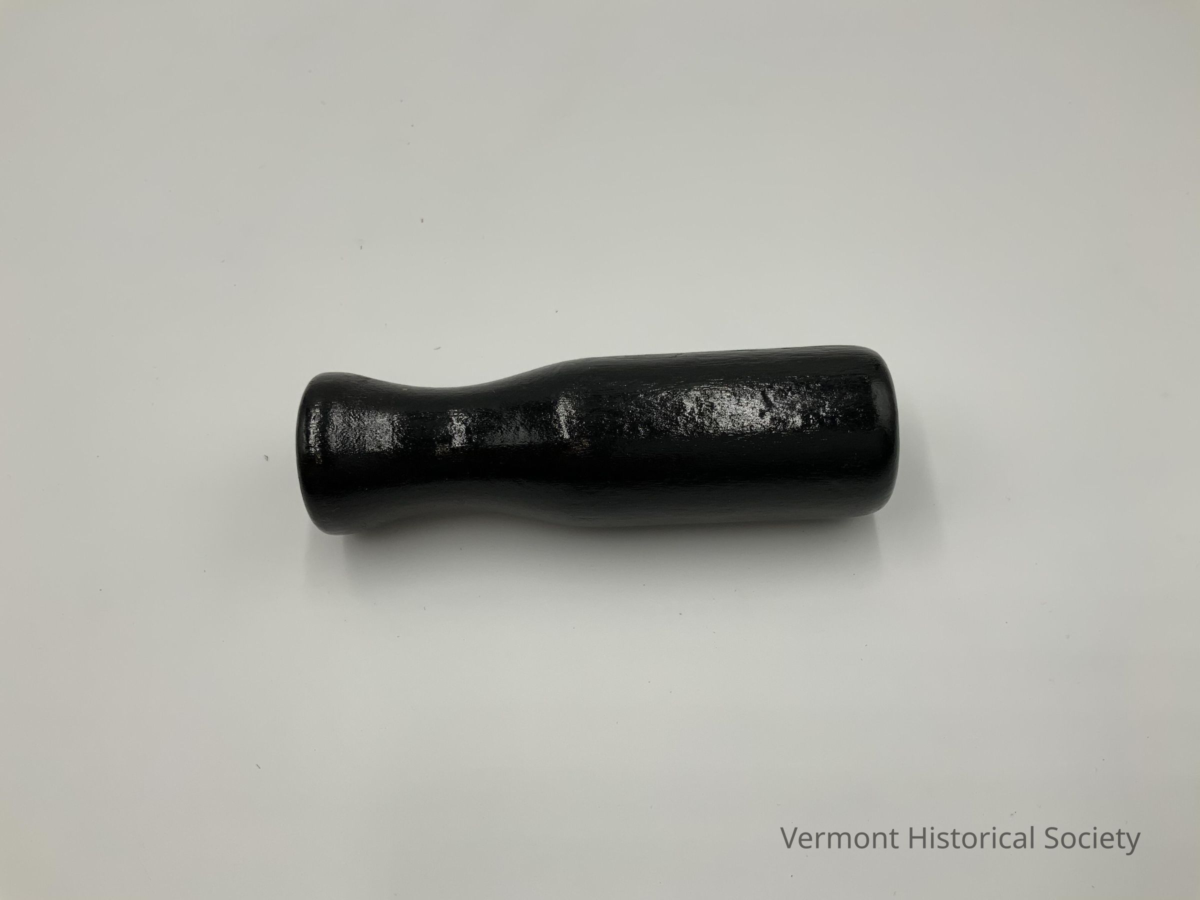 Glossy, black-painted handle of turned wood. The handle tapers toward the base before flaring back out again.