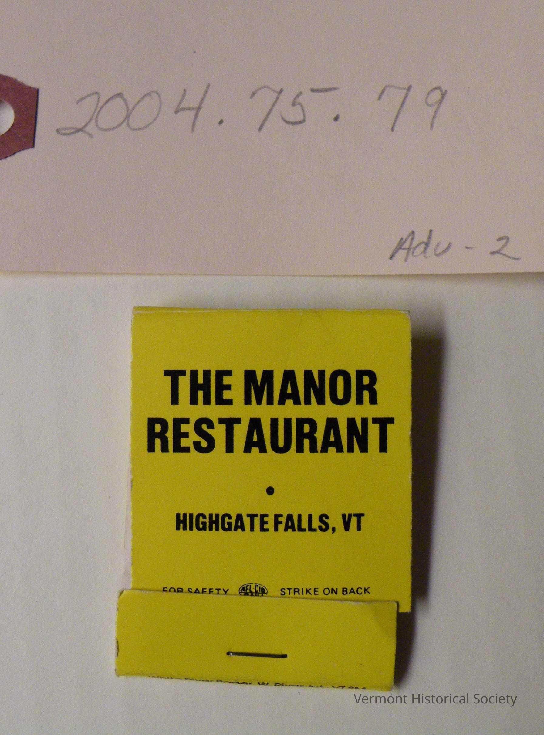 Produced as an advertisement for The Manor Restaurant in Highgate Falls, VermontAcquisition