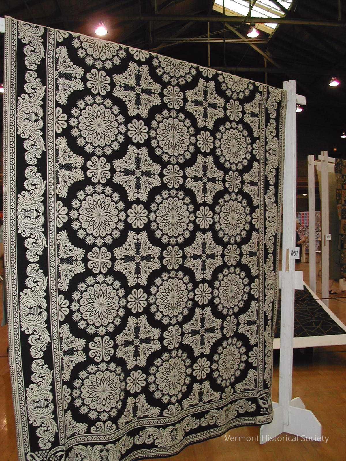 Emily Andrus lived in Pawlet, Vermont and owned this jaquard woven coverlet. It isn't clear though if she made the coverlet or if it was a gift.