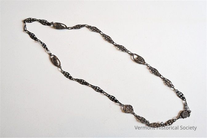 This amazing object is tiny but is one of the few known covenant chains surviving and is therefore exceedingly important. It probably dates from the Treaty of Kahnawake and has feather links, a fleur de lys link and seated lion links indicating the Native Nations, the French citizens, and the British Government.Acquisition