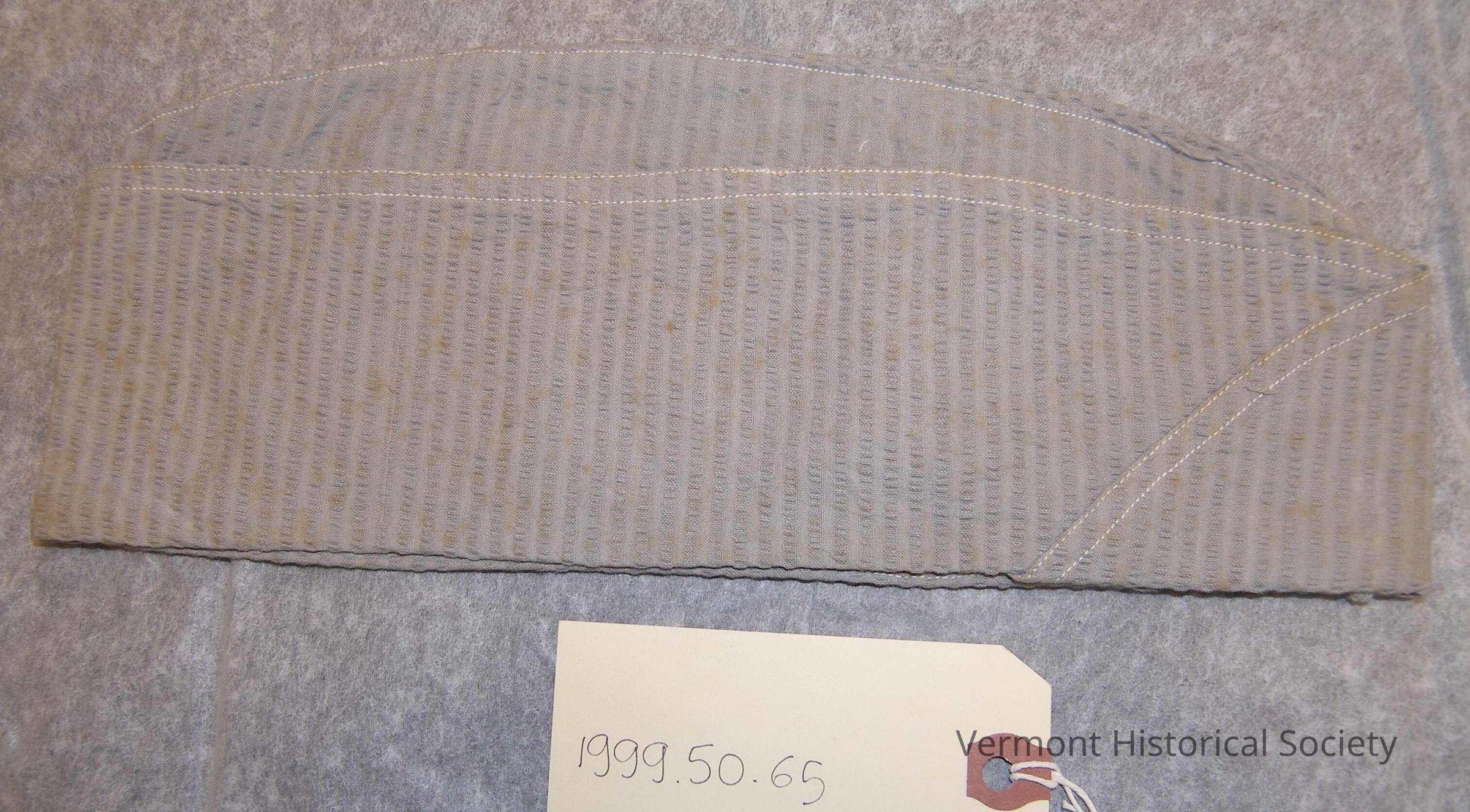 Gray seersucker garrison cap.