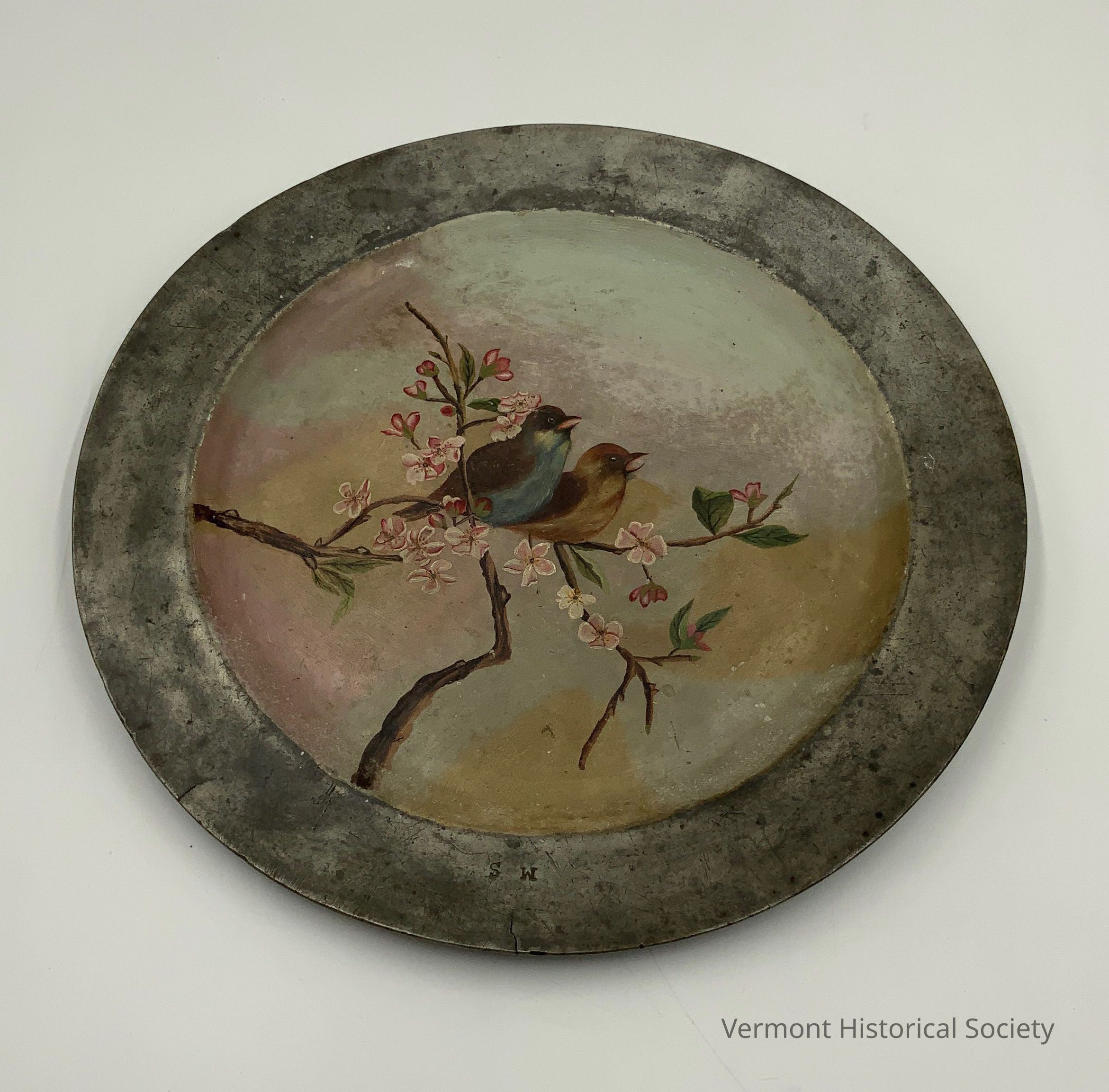 The plate likely belonged to Melinda Burditt (1817-1901) who married John Stevens in 1896. They lived in Pittsford, Vermont. The plate was passed down through generations of their family.