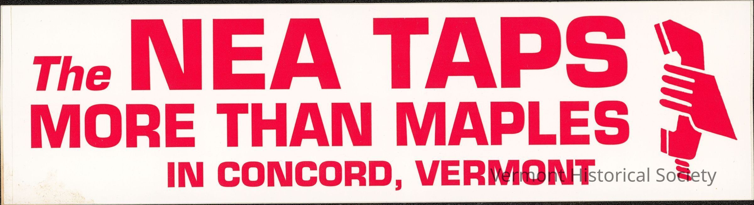 Bumper sticker with the words "The NEA TPAS MORE THAN MAPLES IN CONCORD, VERMONT" in red text, with a design of a hand holding a telephone receiver also in red.