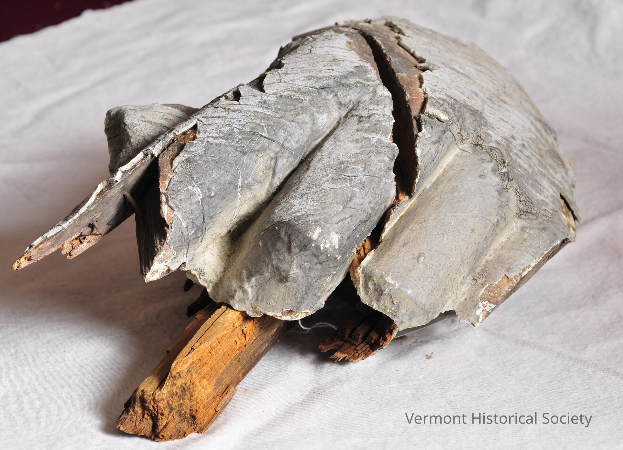 The figure, carved out of wood, stood until 1938. Exposure to the elements means that it was in poor shape when it was removed, and this hand and the head of the statue (now lost) were the only remnants.