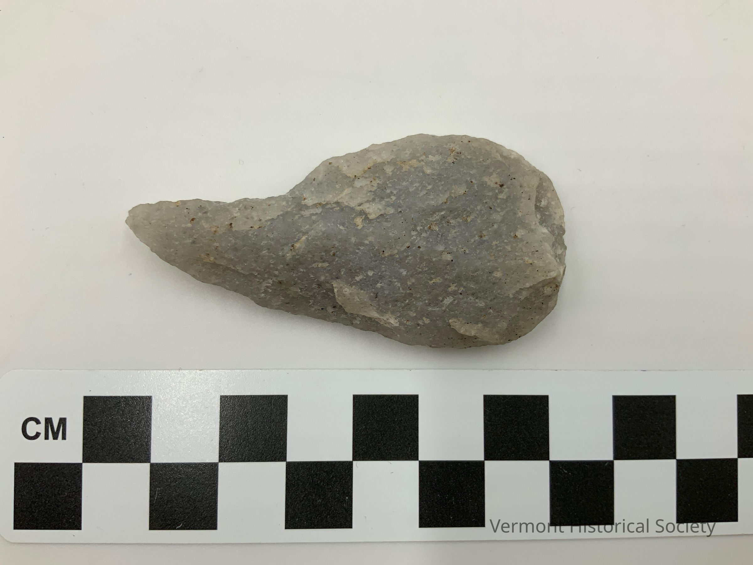 Chipped stone drill. The base is round and the blade is even with one side.Context