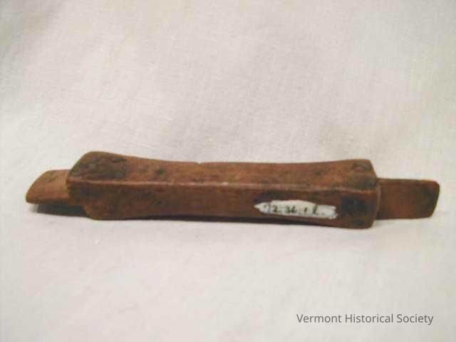 Seam turner consisting of a rectangular piece of wood with square tongues or tenons protruding from either end, perpendicular to each other.Context