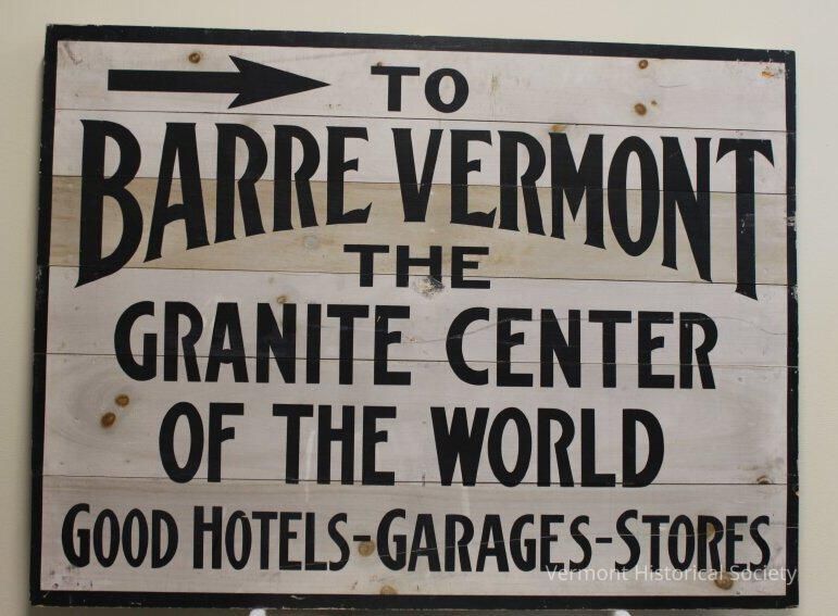 The Barre, Vermont Board of Trade commissioned this sign around the turn of the 20th century to promote the city. The Board was the forerunner of the Chamber of Commerce in the area. In the 1980s, workers found this sign along with nine other identical ones in a barn, still packed in its original railroad shipping crate. We don't know why the signs were never uncrated and used.